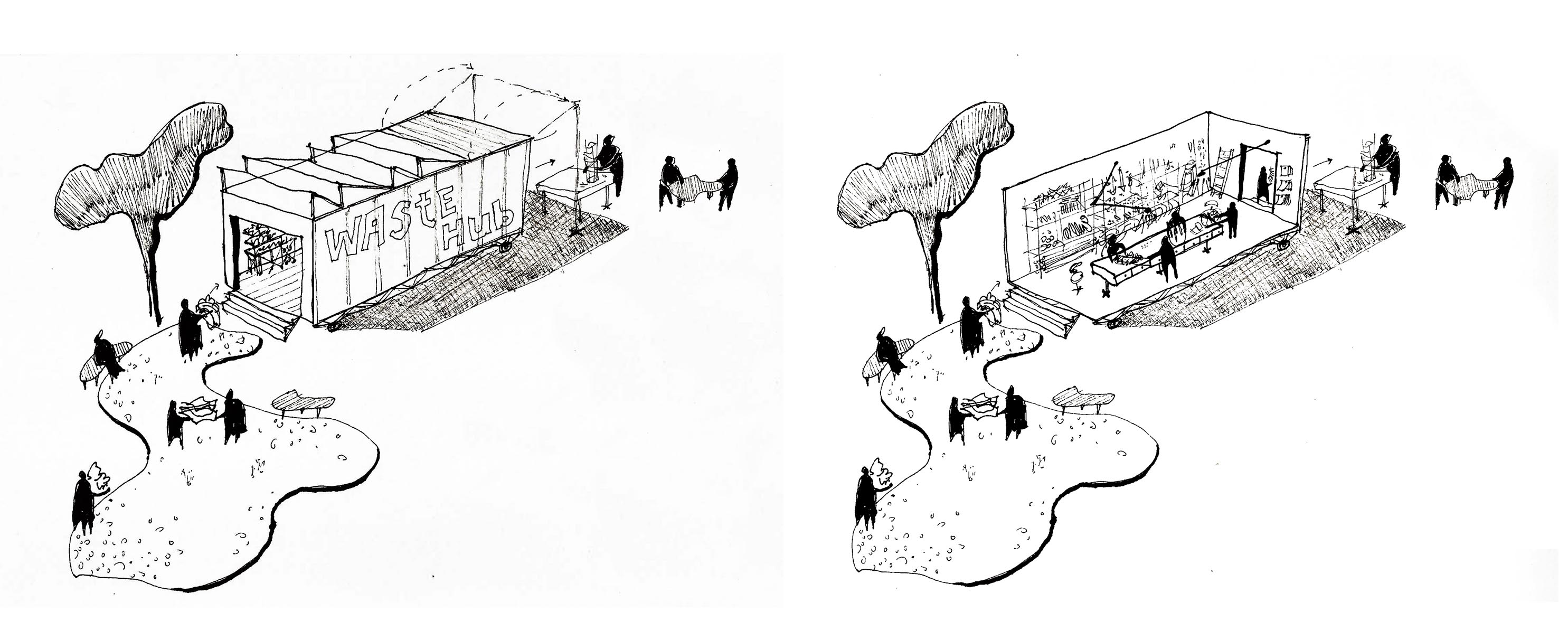 Neighborhood’s Waste-Hubs. Trying to use as much of the solid waste that comes out from the city and give it another life in shape of something else – something usable by all citizens of Gdynia. In this competition we wanted to address the issue of waste production which resulted from the world of over-consumption. By synchronizing with initiatives from the city who already take care of the waste collection and categorization, we want to build so called Waste-Hubs near the locations of collected waste and provide the closest neighborhoods with spaces of workshops where they can participate to transform this waste into something usable. These can be urban furniture, homeless shelters, bookshelves or tents, anything usable for the city’s public spaces, or for the residents themselves. Such new use of waste can be ever evolving because the more people get involved in this idea the more ideas will come out on how to transform the collected waste.