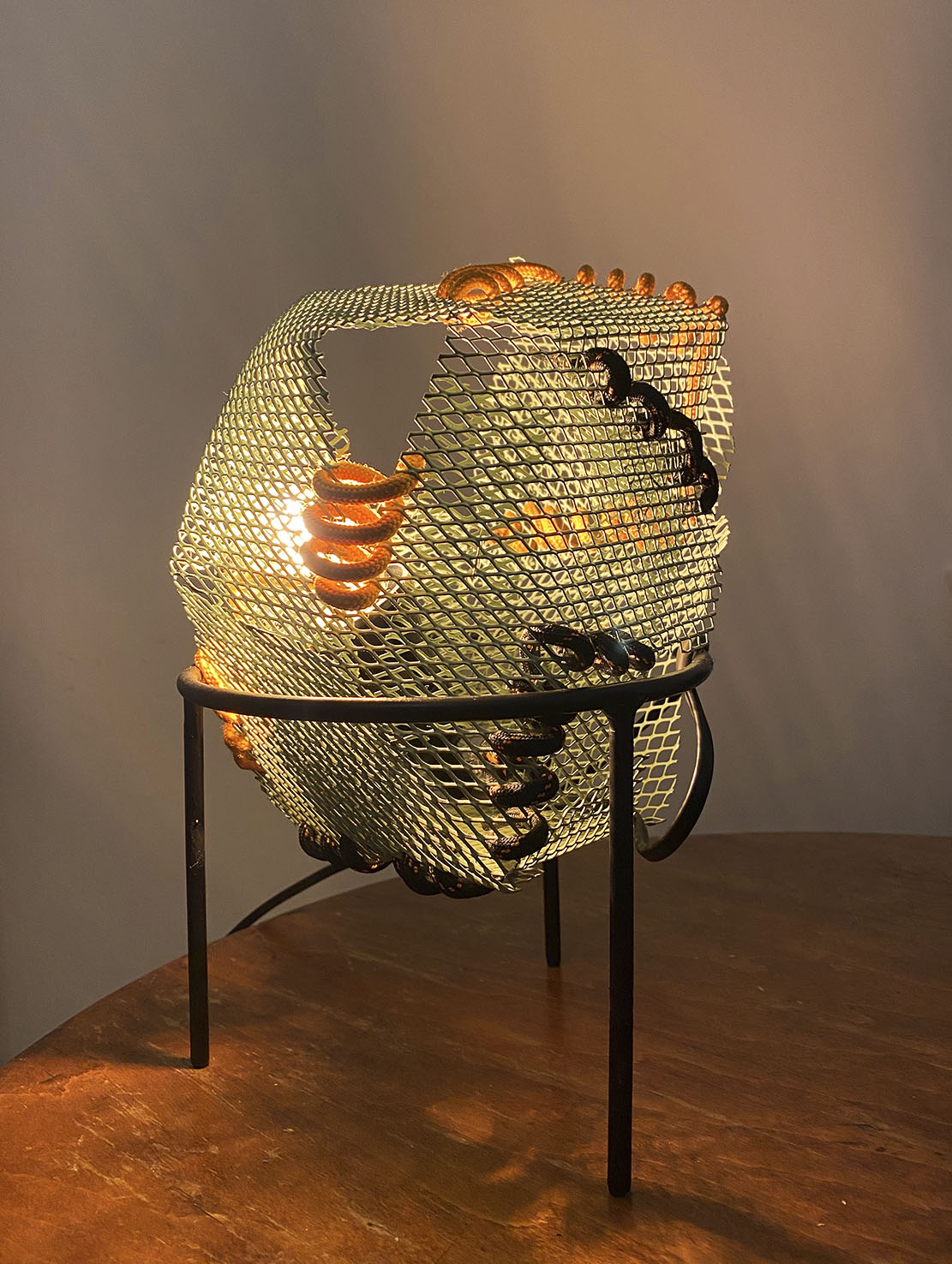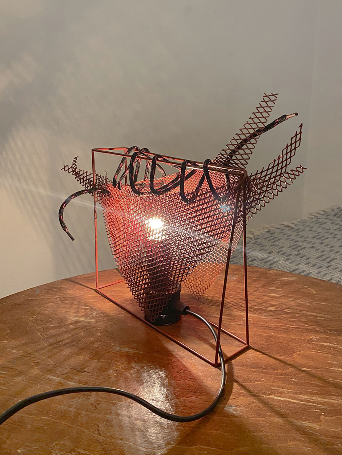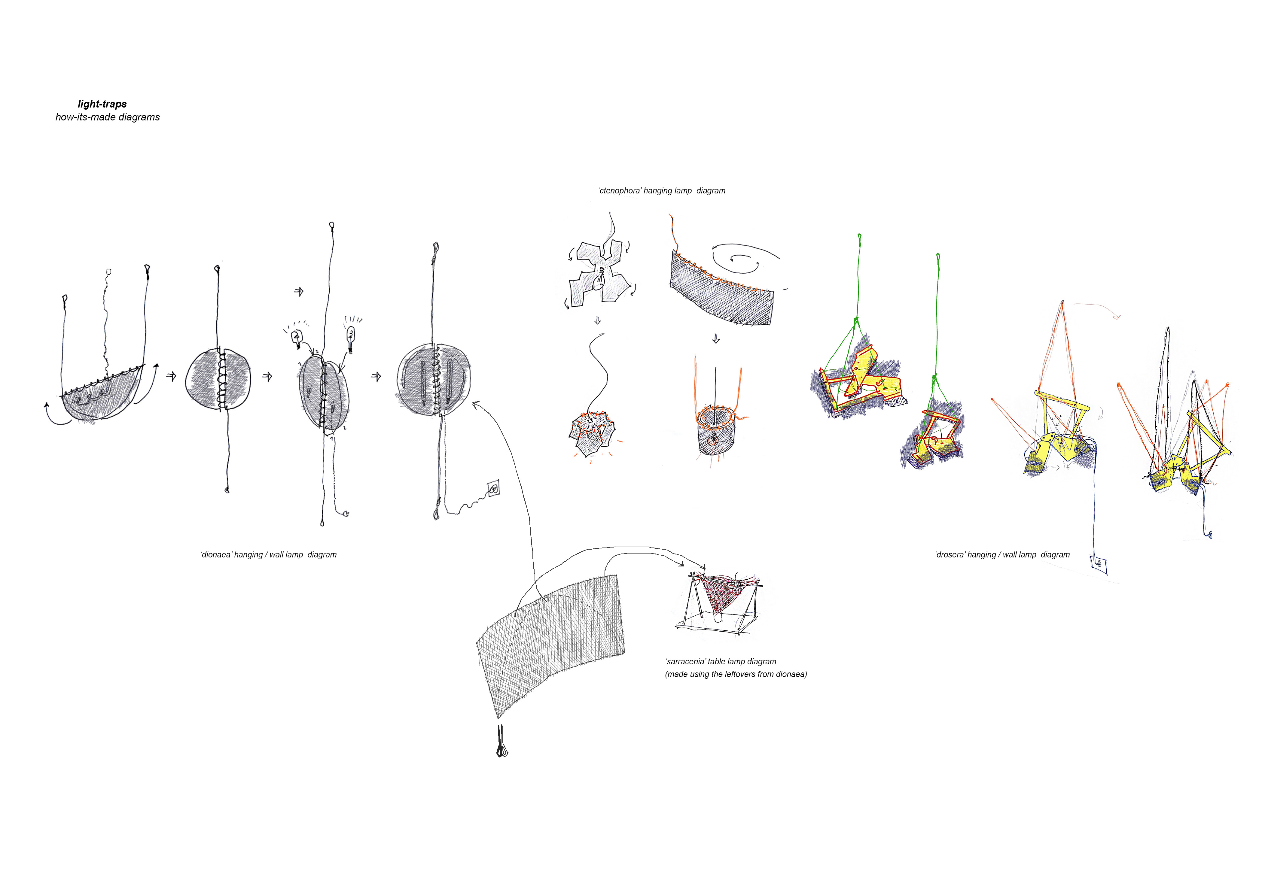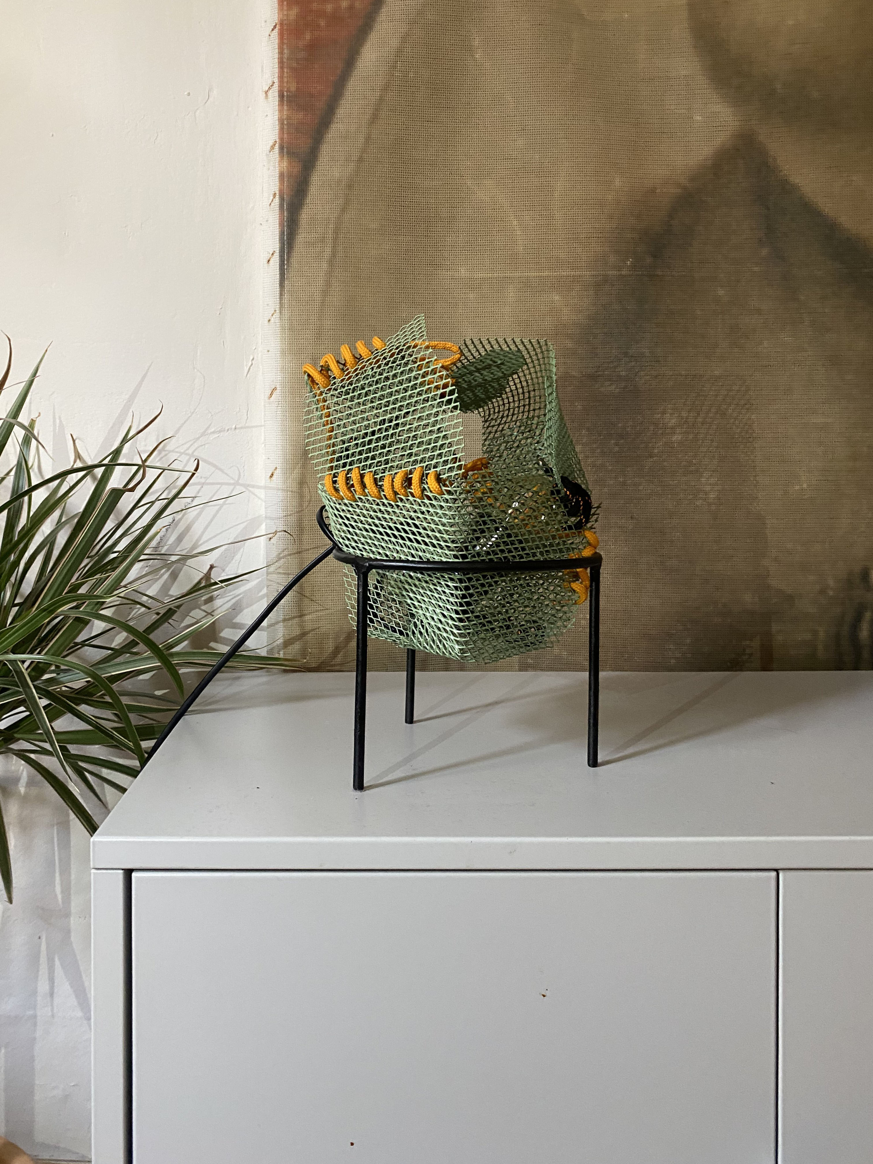 The project ‘Light traps’ is a collection of lighting objects created during July 2023. The name of the collection comes from the visual and symbolic inspiration found in the natural world of carnivorous plants and sea jellies. This idea was born out of the personal inclination towards re-purposing discarded materials or objects. And also due to a limited choice when it comes to lighting design supply in the Balkan region. Metals found near metal waste, materials like metal mesh and textile ropes are all used to create lighting objects which demonstrate what can be achieved with little investment and with giving new life to waste.